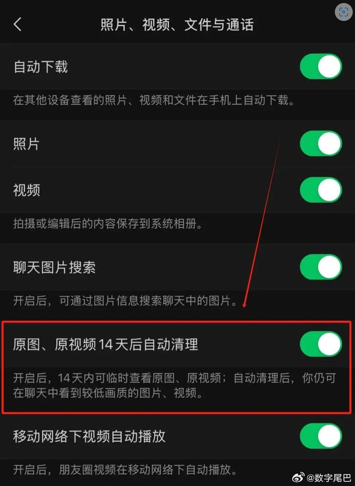 #微信将14天后自动清理原图原视频# 在微信 8.0.54 版本中,这个功能正在小范围测试,我感觉没啥用,微信体积该大还是大。[吃瓜]