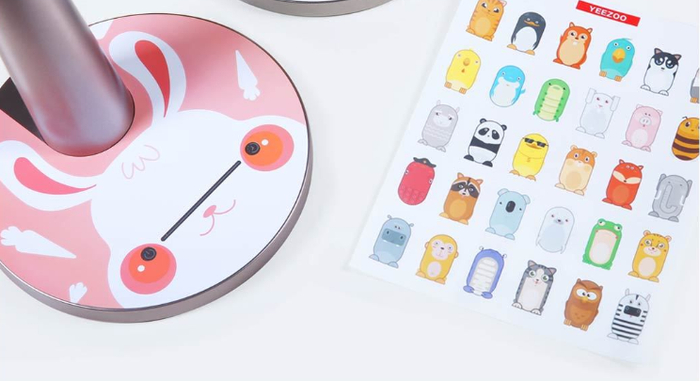 作为一款儿童产品,卡通的造型往往是吸引孩子的一大因素,Yeelight智能护眼台灯Pro则是在底座上下了不少工夫,随机赠送了2张卡通贴纸,可以无缝贴合在台灯底座,同一盏台灯,也可以有不同的玩法。