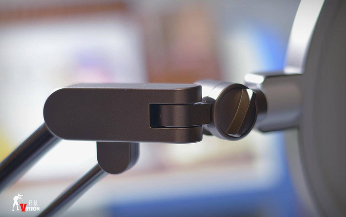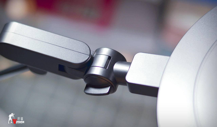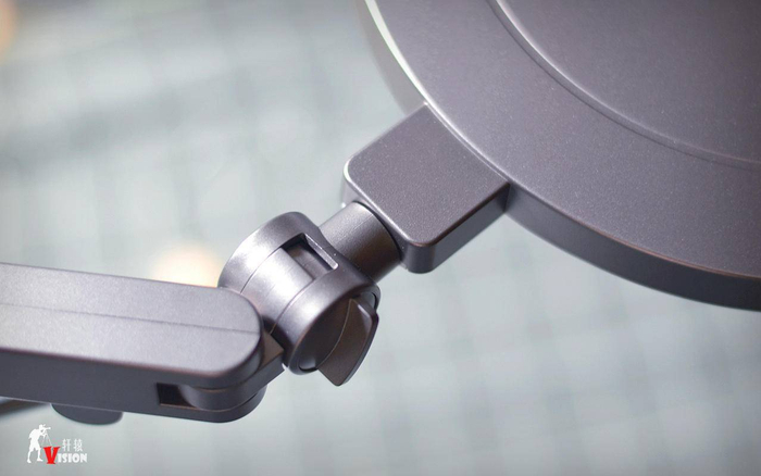 灯架顶端与灯盘的接触部位,看似不起眼,居然可以三向旋转关节,灯盘可以上下倾斜、左右调节、前后旋转,使用场景更加丰富。