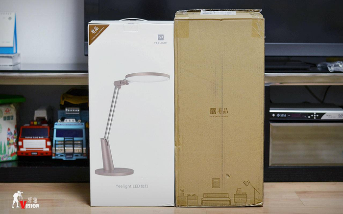 打开彩盒,可以看到开箱全家福,台灯整个嵌入在缓冲材料里,有着极好的防震,能够有效应对暴力运输。
