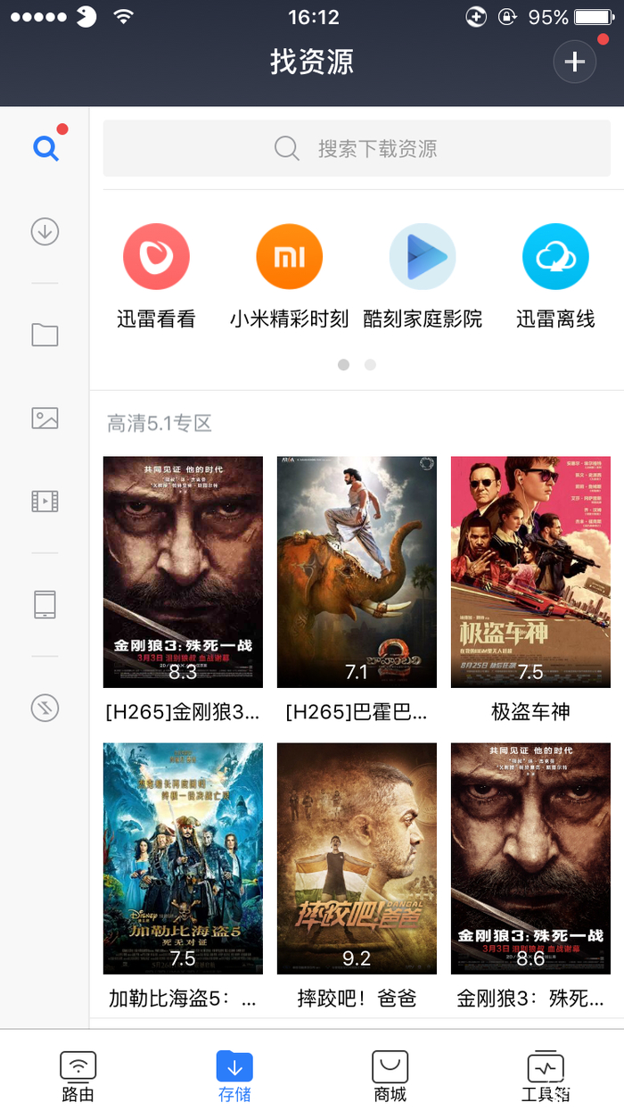 小米路由器的移动版APP整体来说做的要比极路由更好一些,可以通过APP对联网设备进行管理,安装官方插件或扫码安装第三方插件。小米路由器APP甚至支持远程下载,可以直接在APP里搜索电影远程下载到路由器,十分方便。