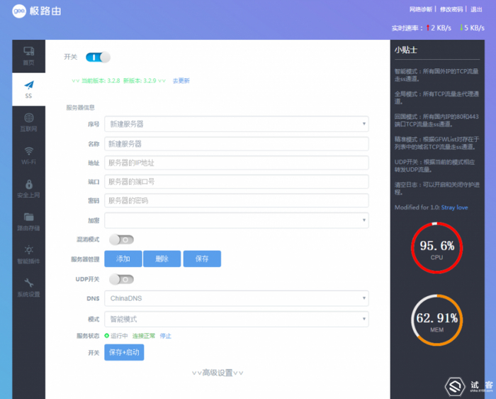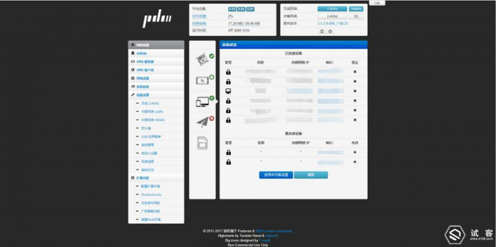 我手里的这台就是刷了Padavan固件,不仅后台界面上更加简洁,而且加入了大家比较喜闻乐见的$$以及ADbyby去广告功能,大大提高了路由器的实用性。当然,使用第三方固件后并非完美,之前原版固件支持的手机APP管理功能也没法使用了,不过我们依旧可以使用不死Breed恢复原厂固件,十分便捷。