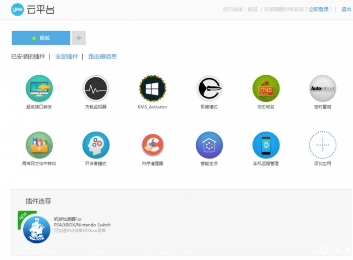 不过极路由最大的特色还是在于其搭载的HiWiFi OS上,HiWiFi OS是由极路由基于Linux和Openwrt系统深度开发,针对MTK芯片进行优化的一款面向路由器的操作系统。HiWiFi OS包含了3大服务:HiCloud云平台、HiStore应用商店以及HiMobile移动互联网。说的直白点,路由器自身就是一个移动终端,在连接了互联网之后可以通过APP远程管理和访问,可以通过内置的插件平台安装插件,实现诸多特色功能。