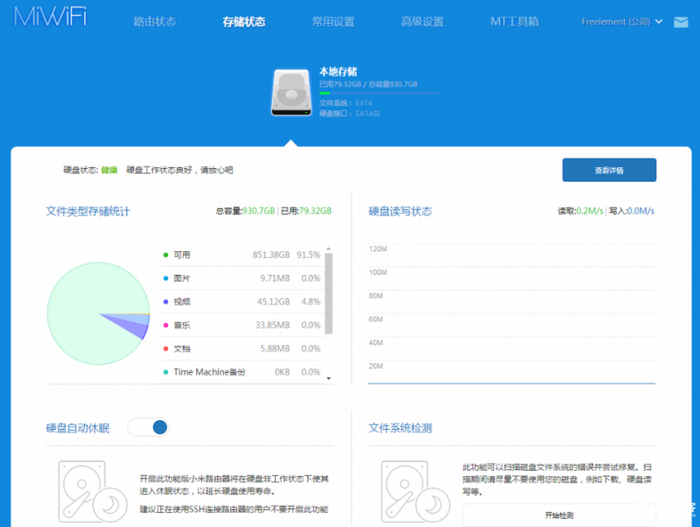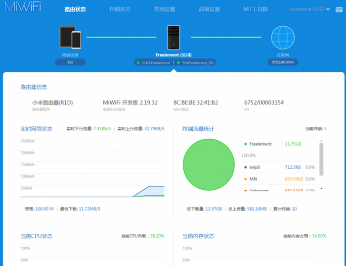 小米路由器R1D是在小米在2014年发布的第一代旗舰级路由器产品,R1D搭载了博通BCM4709处理器,双核1G主频,256M运行内存和1TB硬盘,这个配置放到今天来看都不觉得过时。小米路由器运行的小米基于Openwrt深度定制的MiWiFi OS系统,如果单从硬件配置上来说,小米R1D路由器完爆极路由,甚至秒杀当时的华硕、网件等高端路由器,不过在路由器操作系统上而言,感觉小米路由器真的是差太多了。Web版的路由器后台管理功能太少,没有像极路由那样针对H3C或者锐捷等校园网定制的认证服务,无法通过Web版后台安装插件,甚至连重启路由器的按钮都没有,大部分操作都需要依赖手机APP客户端来完成。