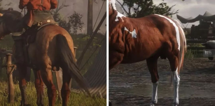 很多人可能会反射性地抢答:“真实性!比《GTA5》真实多了!”……好吧,“真实性”确实是Rockstar为这个游戏的网络传播而精心挑选的话题。类似“马的蛋蛋会随着气温热胀冷缩”这种设计,明显就是为了宣传上赚个噱头,对游戏本身没有任何实际意义——当然,从性价比来说,这个小小的、最多一两个人的工作量赚得了几百万倍的曝光量,是个非常聪明的决策,毕竟整个项目里负责做马的加起来也只有三四个人,而相比之下,制作真实的马与动画,比设计马的蛋蛋要辛苦、复杂得多。但玩家们应该了解的是,“模拟真实”也只是一个宣传概念,最多只能作为一种参考思想,并不是一个能用于实际指导开发的方针——如果哪位老板真的用“真实性”这个方针去要求他的团队,他可能会被美术、程序和游戏设计师一起分尸……