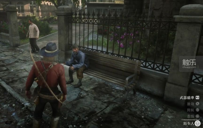 《荒野大镖客:救赎2》和《GTA5》不同的设计点,几乎都是从LT这套将“瞄准”转化成“互动”的设计出发,才得以实现的。在过去的所有《GTA》中,路人NPC都是十分尴尬的存在:你只有一种和他们互动的方法,就是攻击。如果你不攻击或是用车撞他们的话,这些路人永远不会和主角的“GTA”生涯产生任何交集。同样,当通缉出现的时候,事实上也只有一种对策,就是“跑”,警察永远不可能依靠暴力对抗,玩家也不能选择投降。