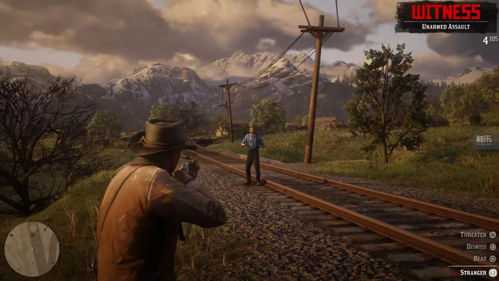 而在《荒野大镖客:救赎2》中,由于LT瞄准键变成了“菜单”,策划明显有了高得多的自由度。就以法律系统为例,当治安官出现的时候,根据你的声望、通缉状况、犯罪是否被目击等不同情况,除了战斗之外,你可以通过菜单选择束手就擒、现场缴纳罚款甚至索性坐牢抵罪。