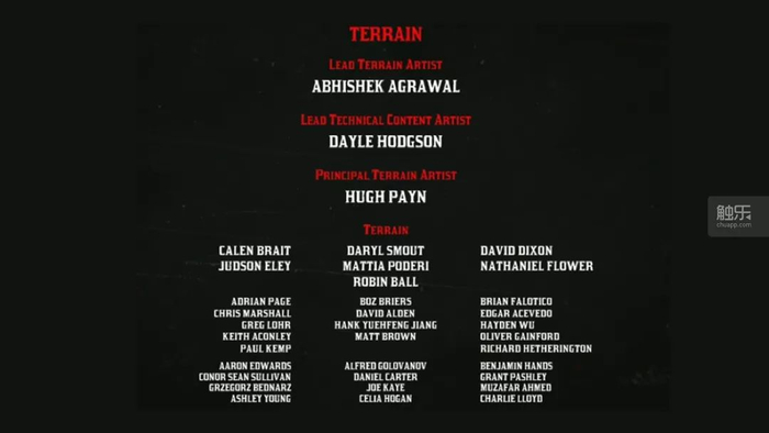 比如光照组,也就1个总监、4个光照美术(1个首席,3个资深)、1个技术美术,6个人而已。顺便说一下,如果在名单中看到两种字号、两种字体或者同一个职位有两组人马,通常是为了区分资深(Senior)和普通。