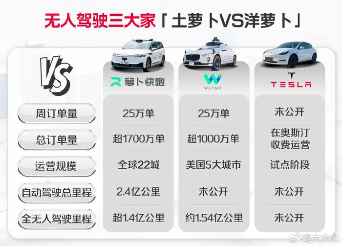 萝卜快跑,每周全无人订单25万全球出行服务次数超1700万次,成为全球第一,跑覆盖了全球22座城市,自动驾驶里程超过2.4亿公里,其中全无人驾驶里程已突破1.4亿公里。