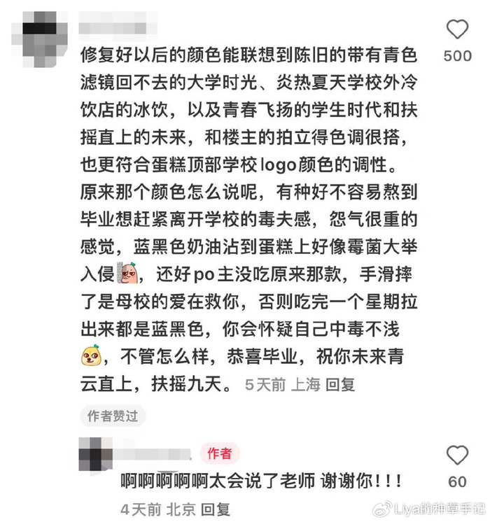 对比修复前后的蛋糕,原版像是 "终于毕业了的忍者毒夫",修复版却成了 "青春校园的精致印记",这种情绪价值的提升堪称降维打击。