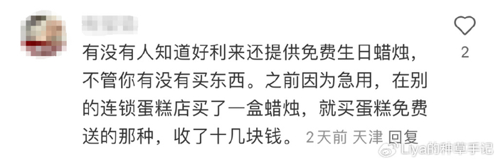 还有网友分享自己的经历,即使没有买东西,好利来的生日蜡烛也是可以免费赠送的,99%的人不知道的品牌冷知识又增加了。