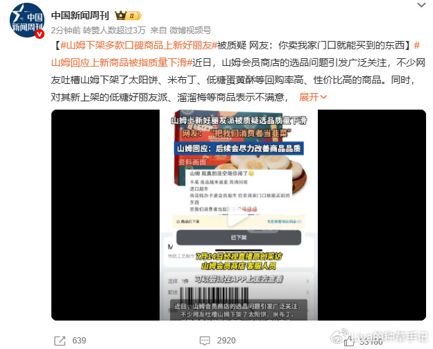 面对这些声音,山姆的工作人员简单回复称,商品下架信息以 APP 为准,选品问题会努力改善商品品质。