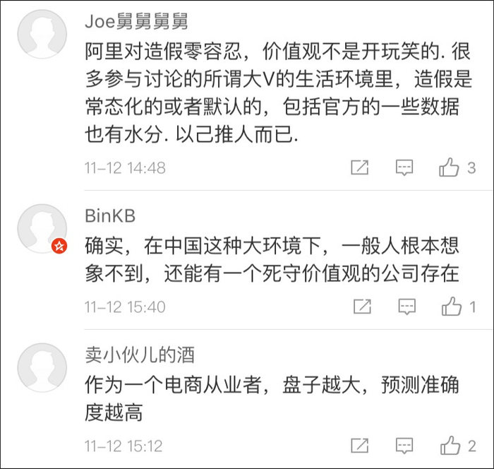 还有网友称,很多参与讨论的所谓大V的生活环境里造假是常态化或默认的,以己推人而已。“作为一个电商从业者,盘子越大,预测准确度越高”。