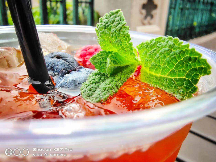 在微距方面,得益于2.5cm超级微距方案的使用,vivo X27 Pro能够为你带来同样出色的食物、景物特写。如上图所示,vivo X27 Pro轻松记录下了饮料中薄荷叶的脉络,而且清晰保留了薄荷叶的边缘。配合上专业的背景虚化算法,一幅高质量照片就此诞生。