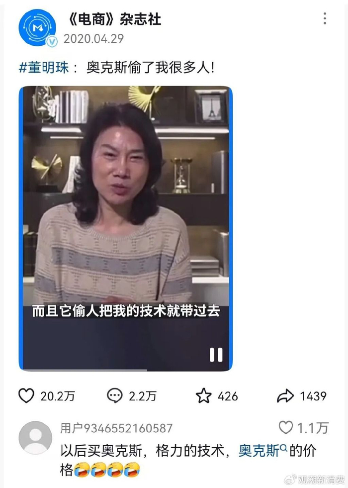 2013年的一次临时股东大会上,董明珠炮轰奥克斯频繁到格力“挖人偷技术”,拉开了两家公司长达十年的恩怨序幕。