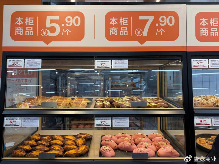 在烘焙与熟食区,调整更为显著。由于当地烘焙品类竞争激烈、需求旺盛,所以华南区域的门店在烘焙品类上进行了扩容,据壹览商业观察,与华东地区的门店相比,至少增加了超10款SKU,价格集中在5.9-9.9元区间。