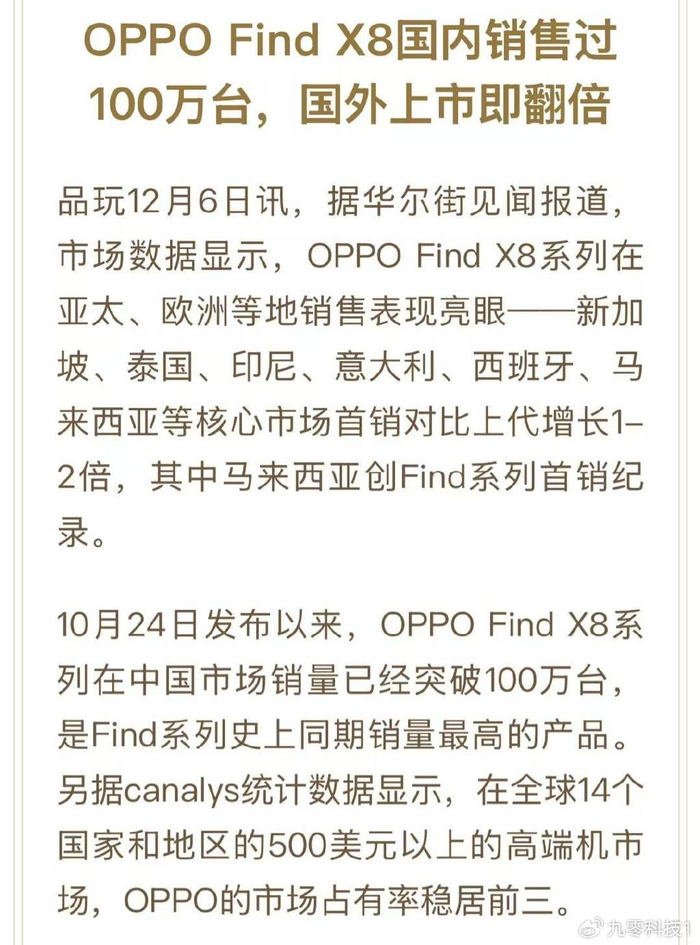 先说OPPO Find X8系列,这绝对是OPPO在今年下半年推出的最重磅的新品,国内市场销量直接突破百万台,刷新了Find系列史上同期销量最高的成绩,是2024年度旗舰的有力竞争者。