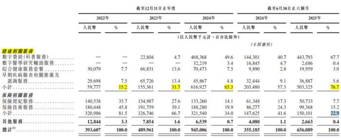 健康服务业务收入贡献也从2022年的15.2%到2025年上半年的76.7%,已经成为公司最主要的增长引擎。