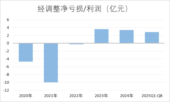 效果立竿见影。自2023年起,公司开始扭亏为盈,至今已连续三年盈利,累计盈利9.84亿元,特别是2025年前八个月,公司经调整净利润为2.86亿元,同比高增超70%。