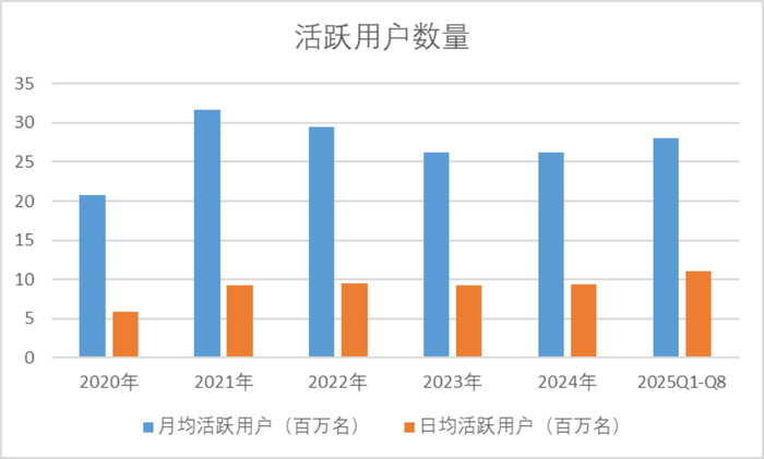用户数据印证了这一点,2024年月均活跃用户数量相较2021年峰值已明显下滑,日均活跃用户数量也仅是维稳状态,直到2025年前八个月,即IPO前夕才略有回暖。