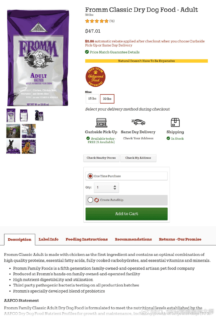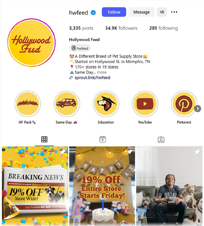 以宠物食品为例,我们发现 Hollywood Feed 在 Instagram 上销售。而且他们拥有大量粉丝(约 3.5 万)。