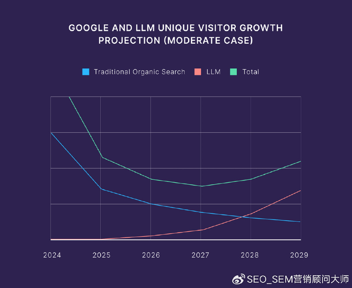 Semrush 的研究表明,到 2027 年,LLM 流量将超过 Google 搜索。