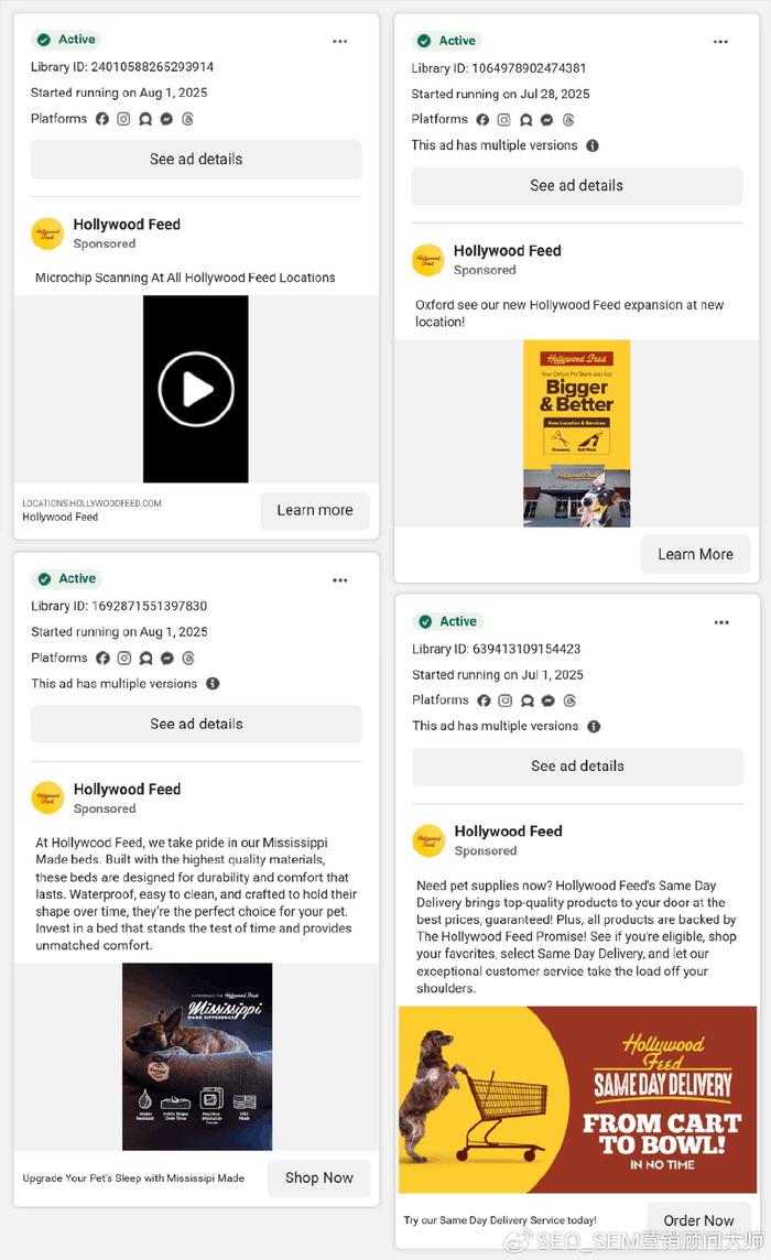 Hollywood Feed 的 Meta 广告融合了产品促销和本地信息。