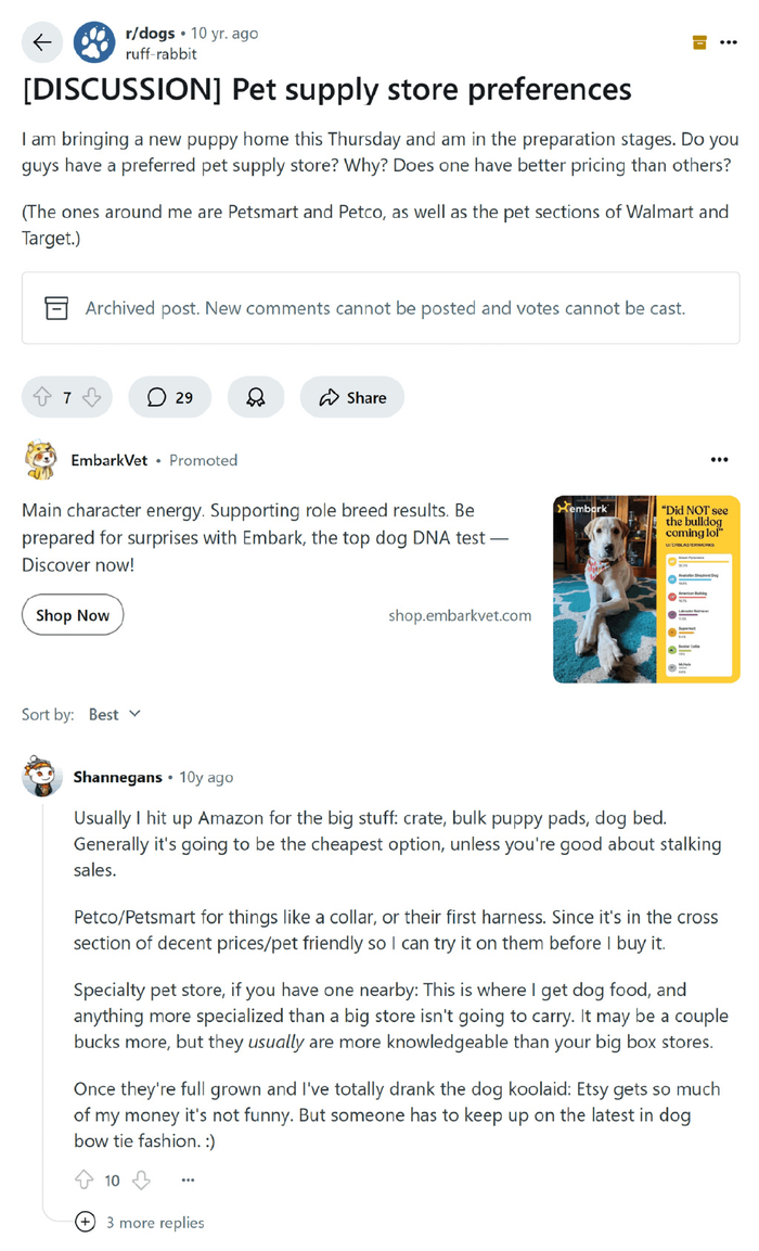 接下来,查看热门的Reddit帖子和宠物主人论坛。在这些地方,你通常会找到一些小众品牌的提及。但根据你的地理位置和/或发展阶段,它们可能仍然是你的竞争对手。