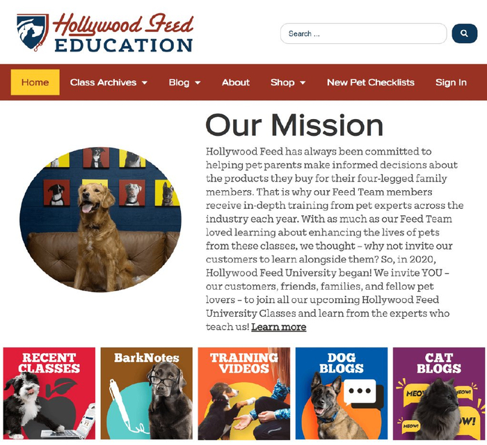 好莱坞饲料大学博客涵盖宠物护理和营养等主题。