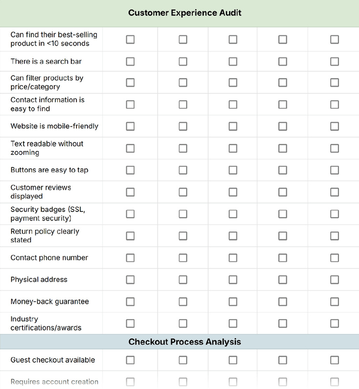 注意:我们在可下载工作表的末尾添加了一个部分,以便进一步分析竞争对手的客户体验和结账流程。