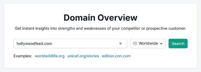 首先,检查竞争对手网站的总体流量。您可以使用 Semrush 的域名概览等工具来做到这一点(当然,还有其他选择,包括我们自己的免费网站流量检查器)。