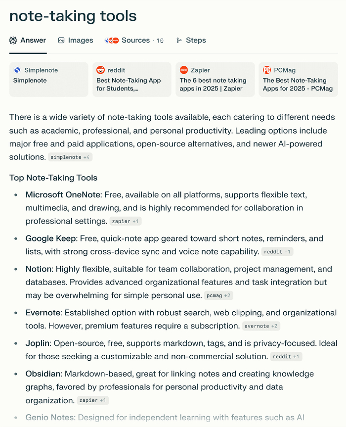 相比之下,Evernote 则专注于 SEO,并获得了强大的反向链接,在传统搜索排名中占据主导地位。