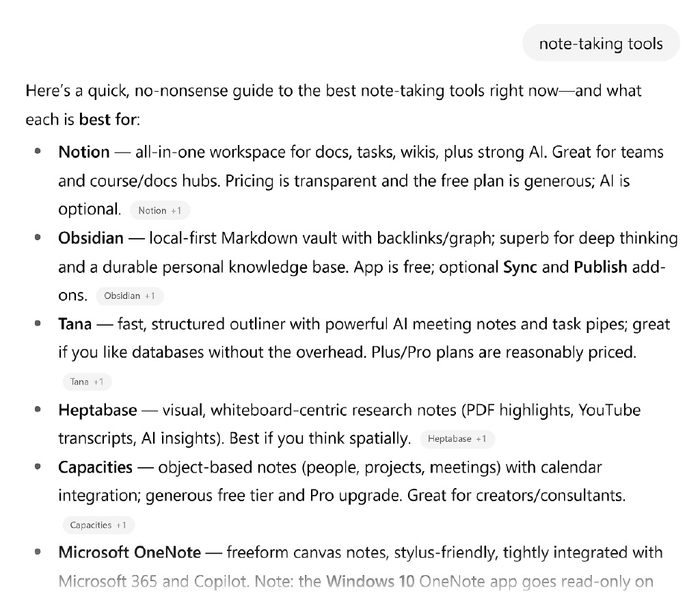 微软 OneNote 经常在人工智能推荐的“笔记工具”中名列前茅。