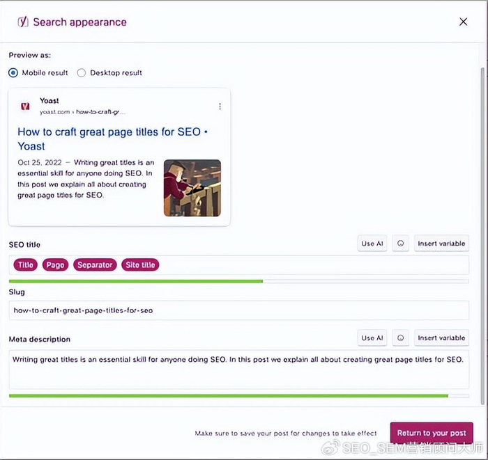 需要明确的是,你不应将SEO标题和帖子标题混淆;两者有不同的目的,且不必相同。
