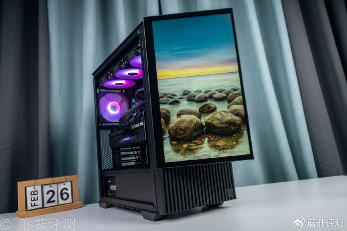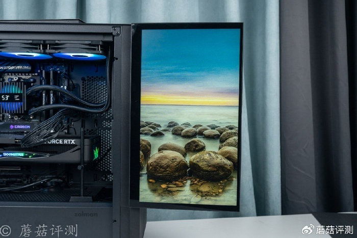 ▼机箱是思民的Z10 DS,这款机箱前部标配15.6英寸的屏幕,在机箱前部,采用合页固定,需要的时候可以水平展开一定的角度。