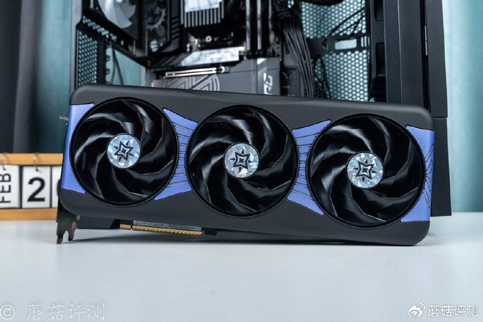 ▼影驰这张RTX 5080星曜NOX显卡标配镜面背板,可以把机箱内部的一些硬件映射到镜面背板上,视觉观感有点梦幻的。