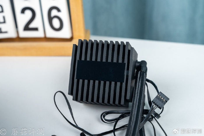 ▼水冷头的顶盖采用竖条纹格栅设计,看着很不错,中间是方形的数显屏幕,可以显示温度数字和思民的LOGO。