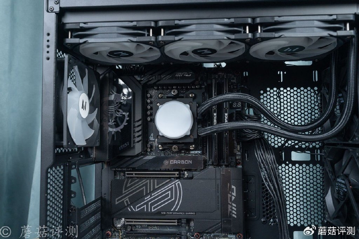 ▼冷排风扇这里是预安装到水冷排上的,方便装机。