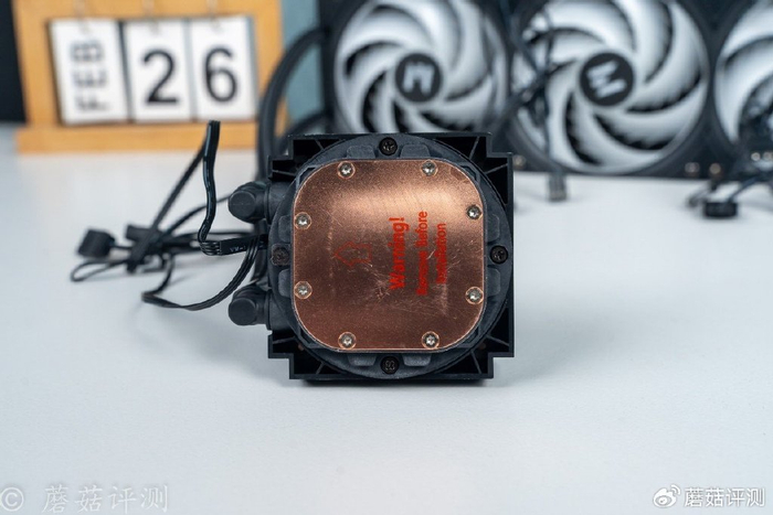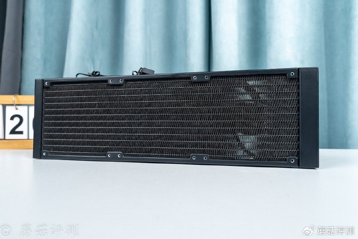▼水冷排采用12条水道设计,进水、回水各6条,在流量和散热面积上取了一个很好的平衡。