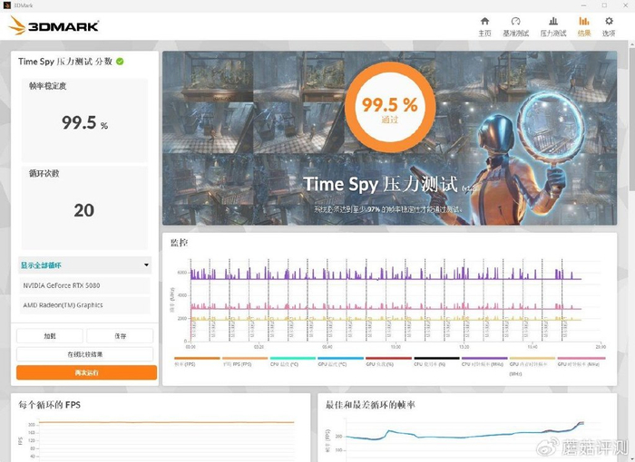 ▼跑个3Dmark的压力测试,TS模式,帧数稳定率在99.5%,非常稳定。