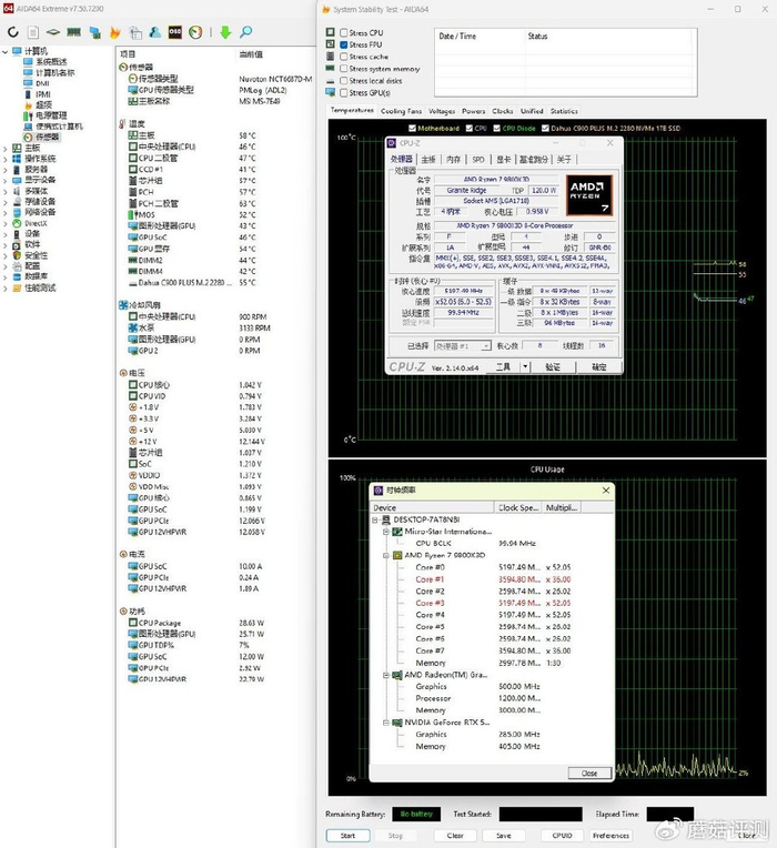 ▼蘑菇这里准备了一颗9800X3D,开启PBO2来测试这款水冷的散热效果。