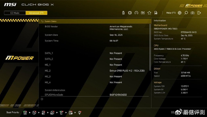 ▼蘑菇这里准备了一套9800X3D搭配RTX 5080显卡的配置,测试这块主板刚刚好。