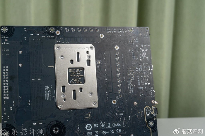 ▼主板底部,也是一整块的金属覆盖件,照顾M2固态和南桥部分的散热。