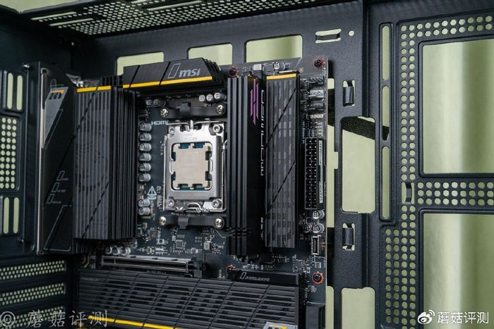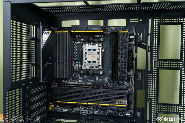 ▼机箱是微星的MAG PANO M100L PZ黑刃,最大支持M-ATX规格的主板,微星这块B850MPOWER超频主板装进去刚刚好,顺手把9800X3D处理器装到主板上。
