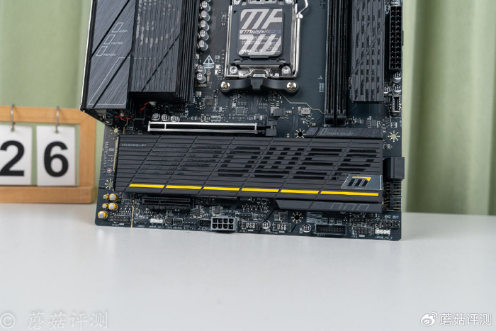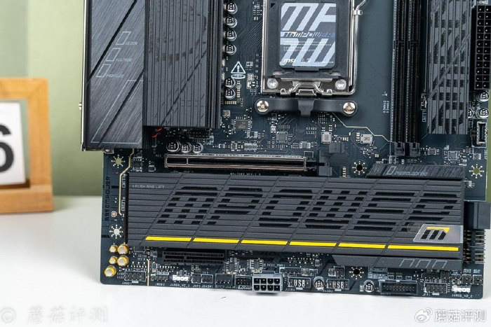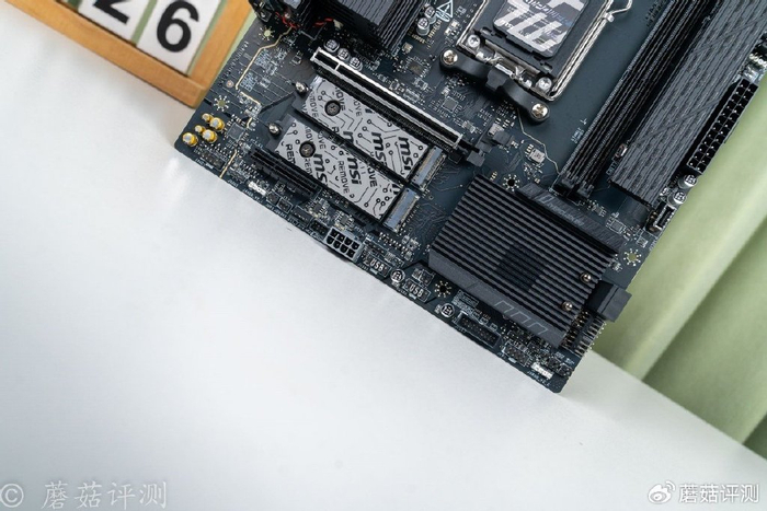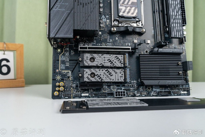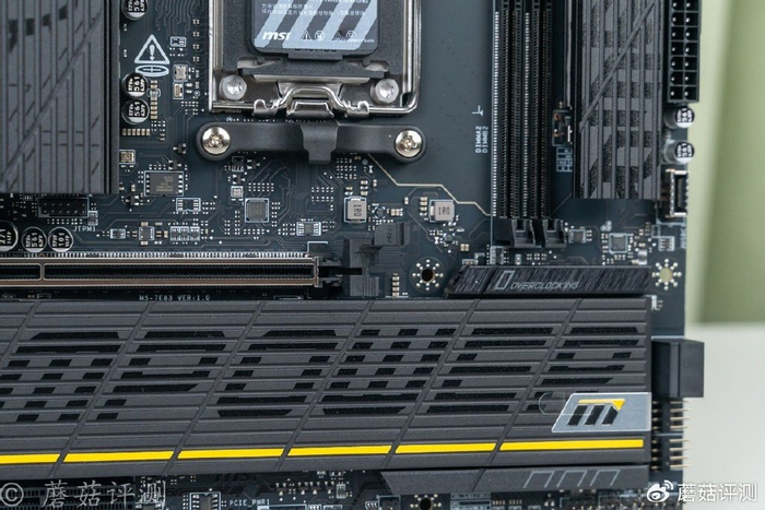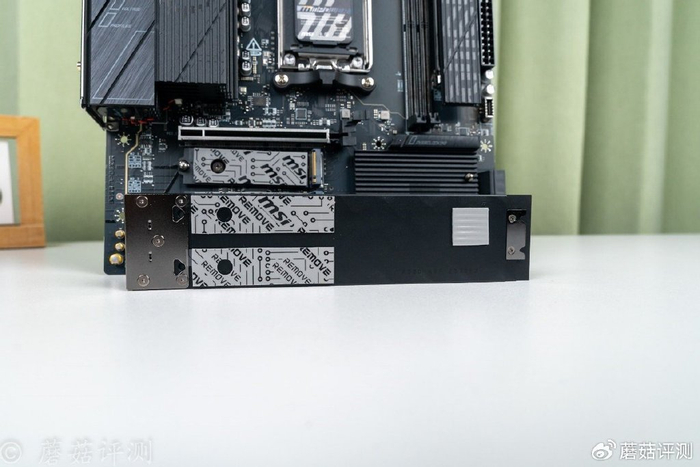 ▼由于其采用双内存插槽设计,空出的空间微星放了一个M2插槽,双面散热设计,且是直连CPU的,最大支持PCIe 5.0 x 4,整体采用快拆设计,日常拆装M2固态特别方便。