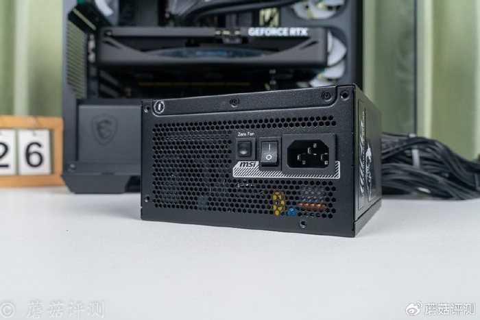 ▼电源用的是微星的MPG A1000GS PCIE5金牌全模组电源,这款电源的颜值很漂亮,侧面使用了多块铝合金装饰件,用料方面使用了全日系105℃电容,拥有10年质保,平时用起来很方便。