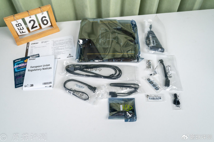 ▼配件方面,除了主板和一些说明文件之外,还附赠了SATA线、主板跳线延长线、WIFI天线、拓展小板、EZCONN拓展线等,配件很丰富。