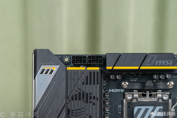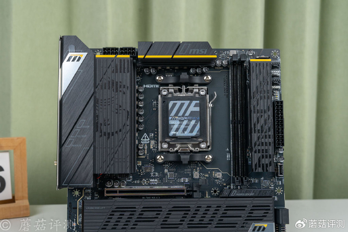 ▼微星这块B850MPOWER主板正面并无RGB灯效,但金属件表面的涂装、质感已经非常出色,机箱内部其他硬件的光影照到上面的效果也很好看。