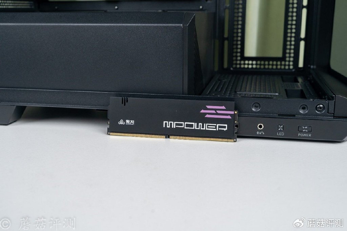 ▼这套内存是MPOWER联盟出品的配套专属优化内存,MPOWER联盟是微星超频实验室与各大内存品牌合作建立的,有很多主流内存品牌加入,通过专属的内存优化,给玩家提供更好的内存性能表现。在内存的金属马甲上也能看到有MPOWER的字样,右上角还点缀了一些紫色的祥云图案,采用国韵设计美学的风格,看着很不错。