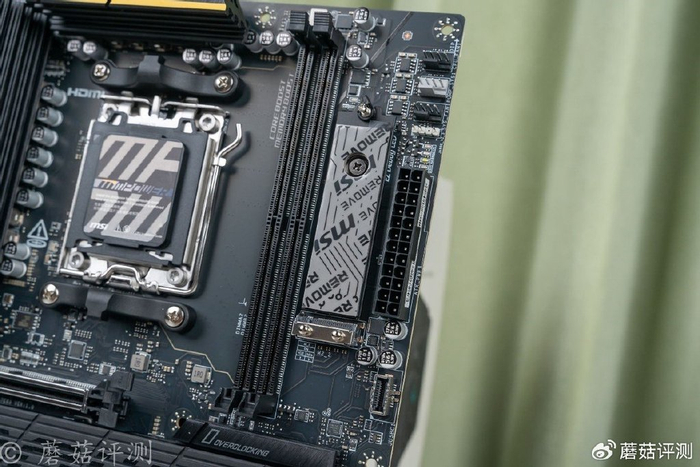 微星这块B850MPOWER主板是一块真的很有个性的主板,这块主板设计的基础就是内存超频,内存采用双插槽设计,内存插槽和CPU插槽为完美的黄金等腰三角,可以非常有效的有利于内存布线,从而让内存超频拥有更好的潜力。